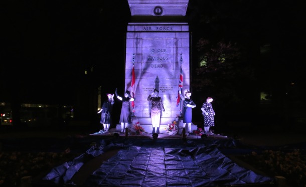 With Night/Shift being held on November first, I hoped that “In Love And War” would be an appropriate and powerful way to pay homage to our fallen heroes and heroines through art. Located at the Cenotaph War Memorial in Downtown Kitchener, and so close to Remembrance Day, many were moved by it’s solemn presence.